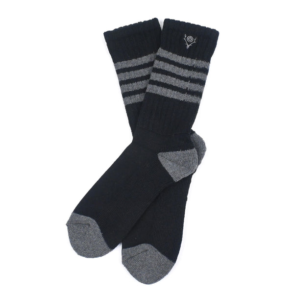 Socks - 4 Lines Cotton Black